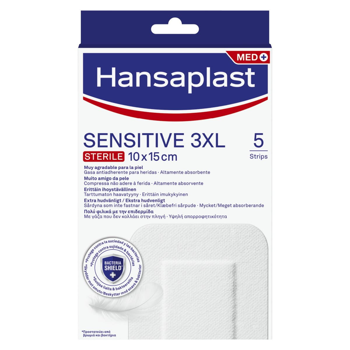 Hansaplast Sensitive XL, XXL, 3XL og 4XL plastre er steril sår bandage til vandtætte beskyttelse of større or post-operative sår. Det ekstra hudvenlige og åndbare materiale klæber pålideligt til huden, men det er stadig smertefrit at fjerne. Den ekstra store sårpude er føles blød mod dit sår sår uden at klistre sig fast i det, og er den yderst behagelig at bruge.Bacteria ShieldHansaplast Bacteria Shield plaster skaber en beskyttende barriere, som forhindrer 99 % af bakterierne i at komme i kontakt med såret. Læs mere om, hvordan vores Bacteria Shield virker her: Beskyt mod infektion med Hansaplast Bacteria Shield plastre.